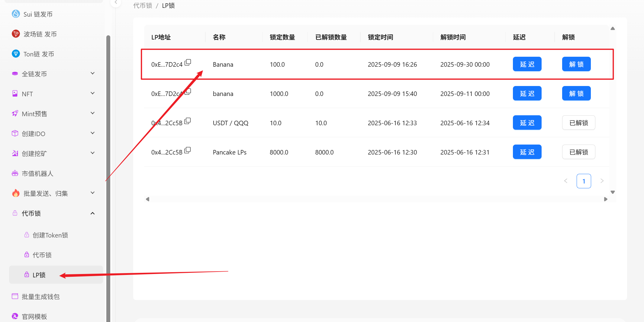 现在您可以在 “代币锁-->LP锁”中 查看和管理了。