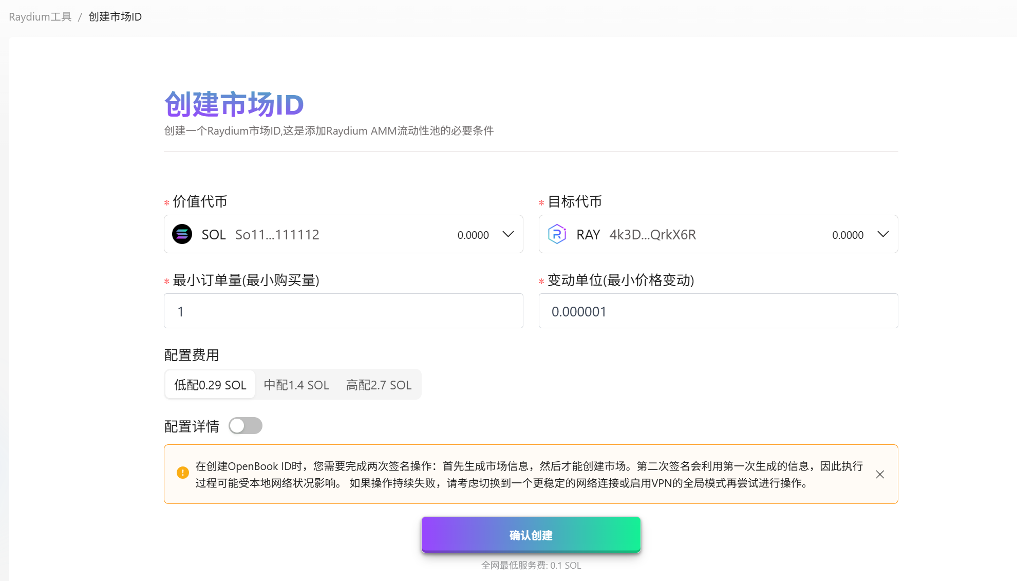 Raydium上线代币市场之前，需要创建OpenBook ID，但是Raydium官方提供的链接创建需要花费 3-4 SOL。这成本使得我们对Solana发行代币望而却步。