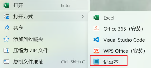 当我们下载了csv文件之后，打开方式选择txt记事本