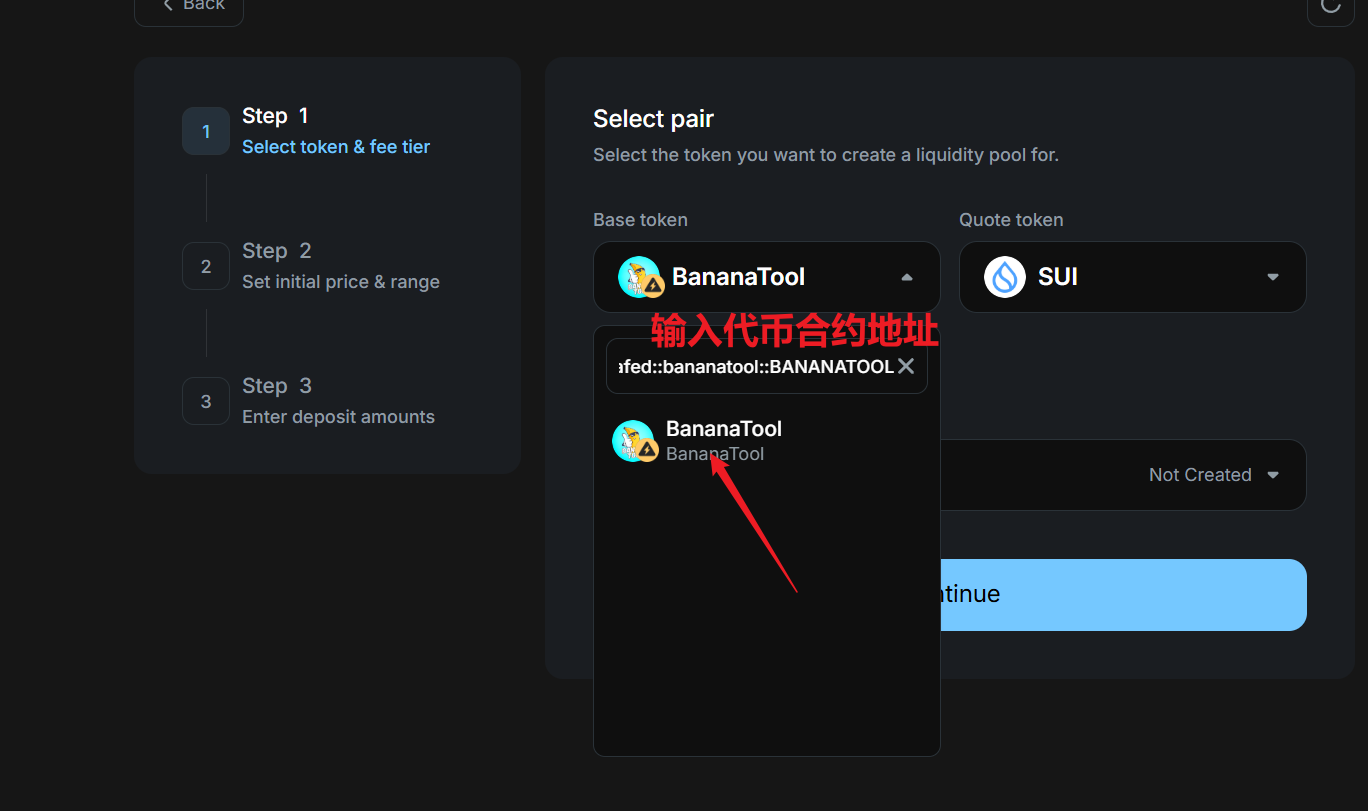 假设我设置价格为：0.0000001SUI，它的意思就是：代币上线的价格是1SUI=100000BananaTool。