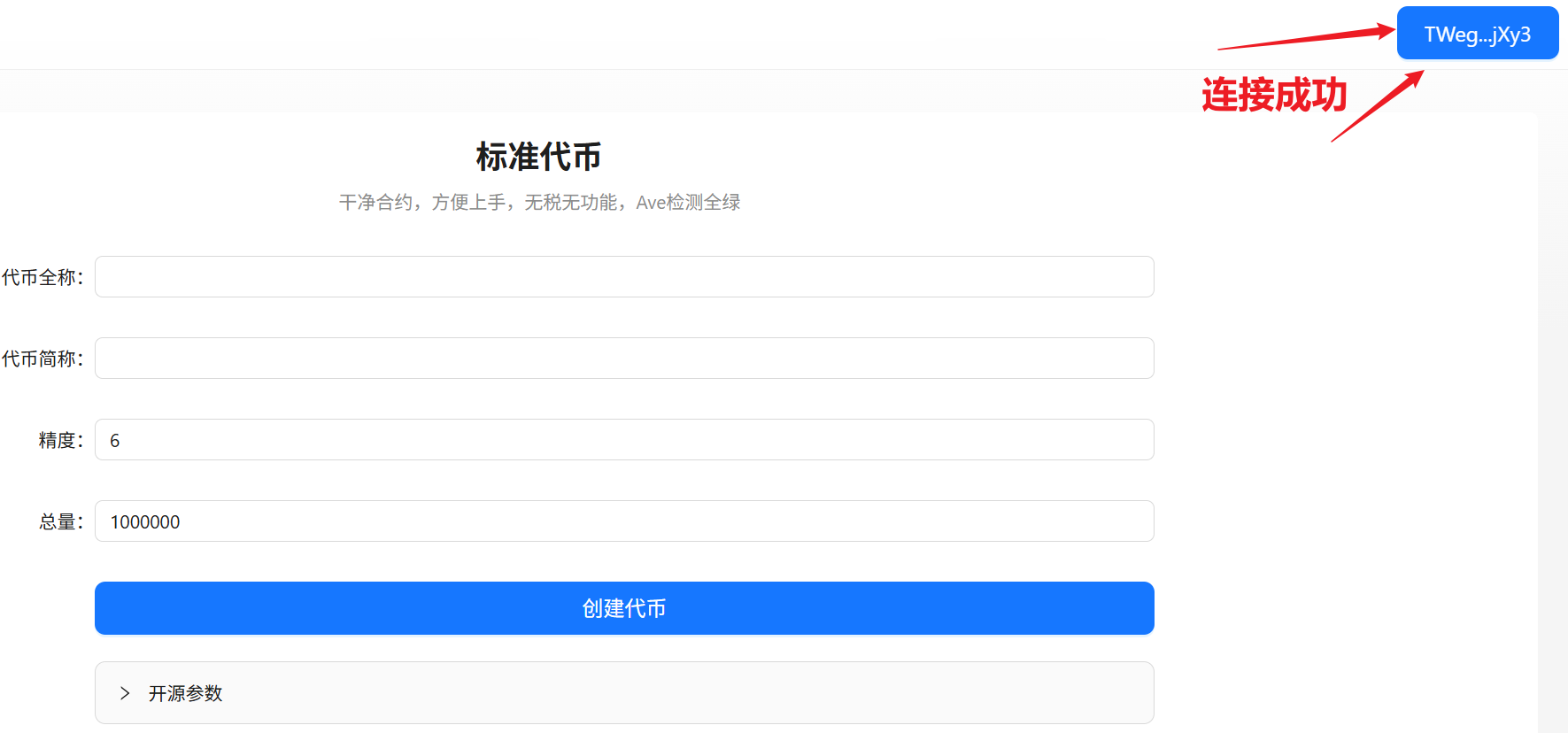 * 2、填写代币参数信息
